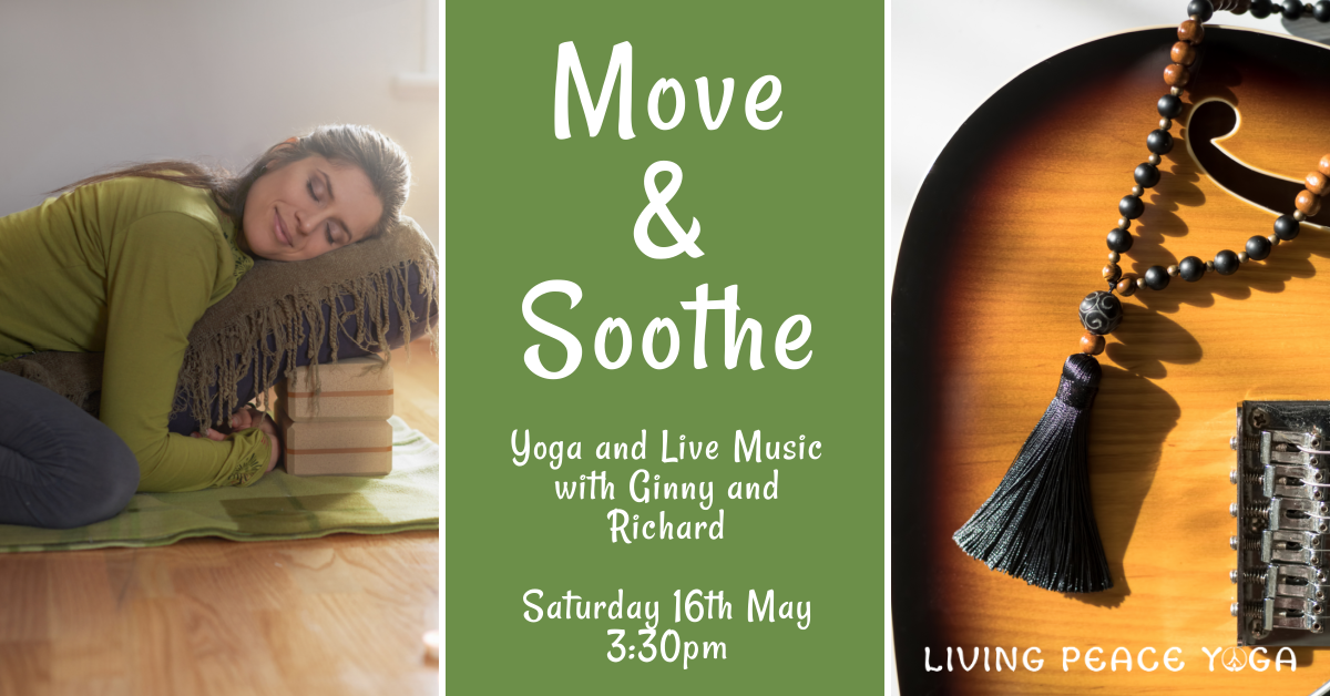 The afternoon will consist of gentle yoga, movement, restorative postures, breathing practices, meditation and chanting, all encompassed with live guitar with Richard Turner and Ginny Clarke.